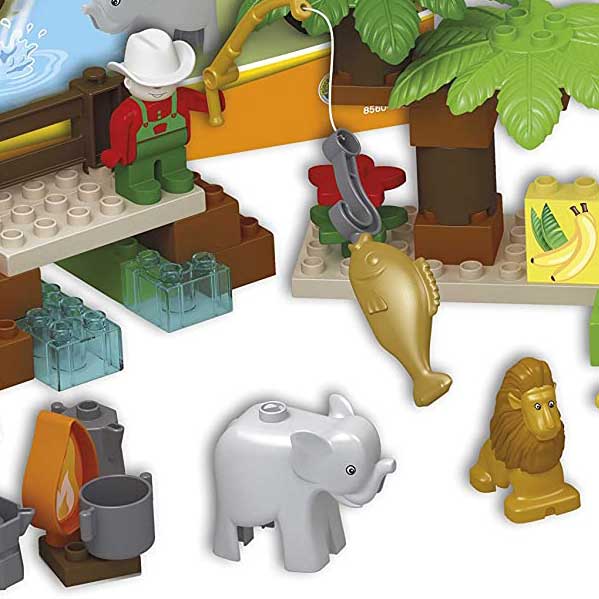 Ismerd meg a dzsungel életét, építsd meg egy szafari színhelyét ebbõl az 55 részes építõkocka készletbõl.