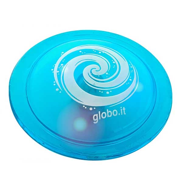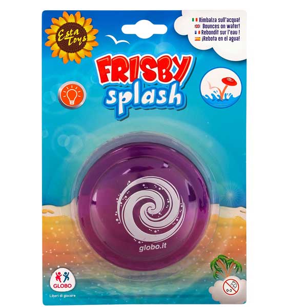 A frizbi vagy frisbee eredetileg egy amerikai játék. Ez az olasz frizbi attól különleges, hogy LED világítással rendelkezik. A 8,5 cm átmérőjű műanyag korong a víz felszínén pattog miközben világít és vizet spriccel.